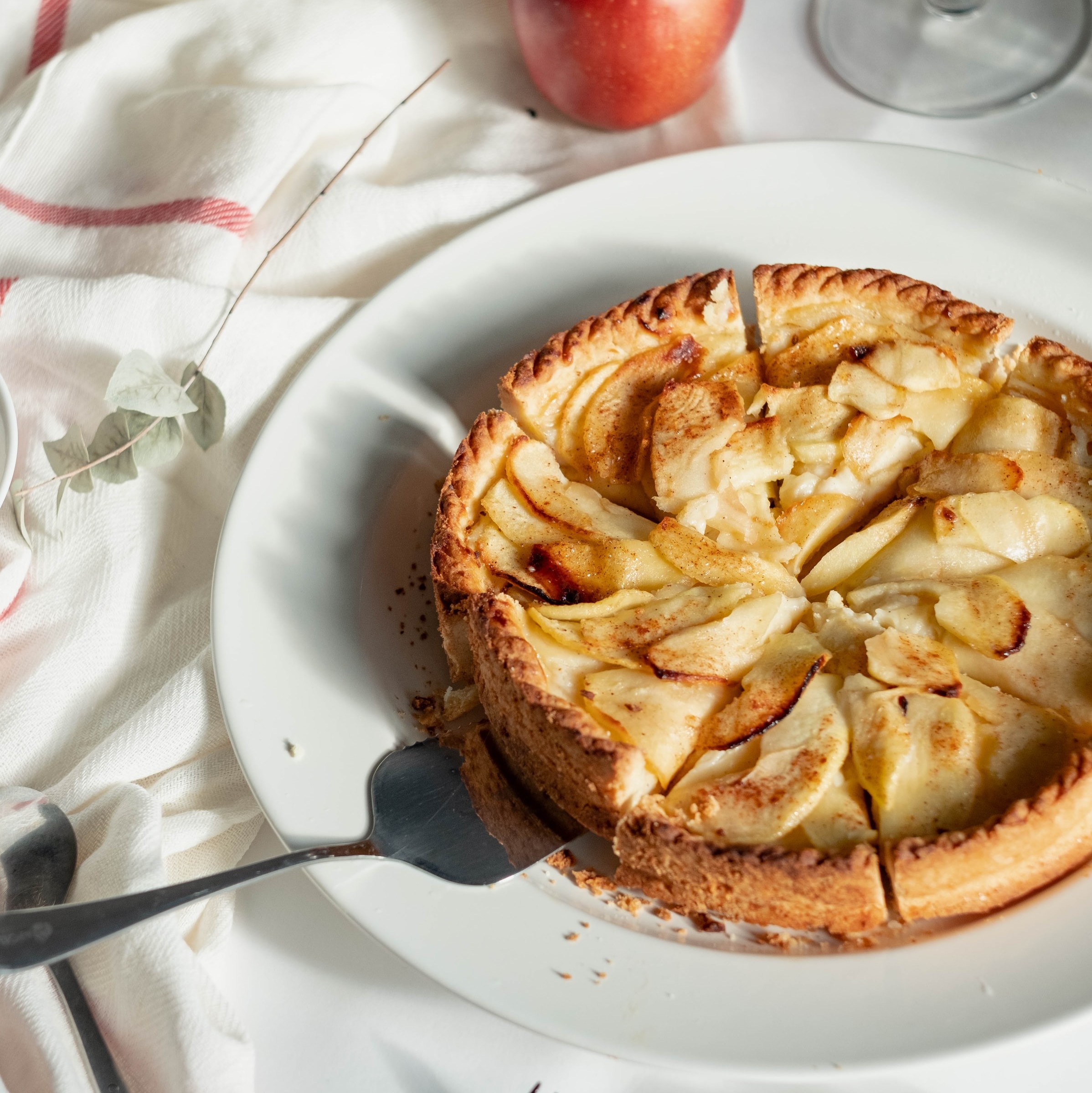 - 2/3 skořičového cukru smícháme s nakrájenými jablky. Zbytek použijeme jako posypku.