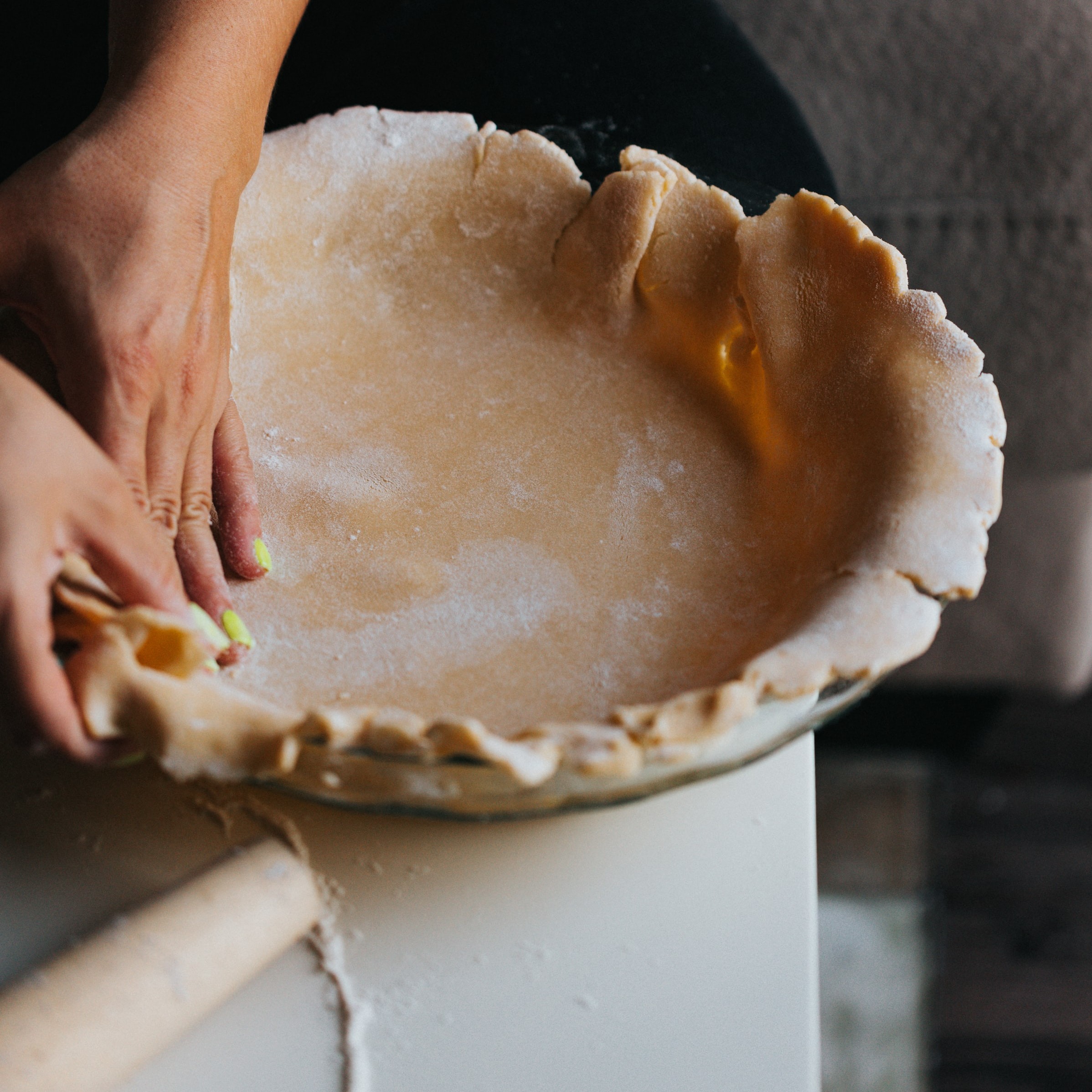 Základní křehké těsto na sladké i slané koláče. U slaných jen přeskočíme cukr. S tajným trikem – alkoholem, je těsto mnohem křehčí, ale zároveň dobře drží. Pokud chceme tvořit mřížku nahoře, připravíme 1,5 množství těsta. Mřížku pokládáme na již naplněný koláč, potřeme vajíčkem a pečeme jako obvykle.